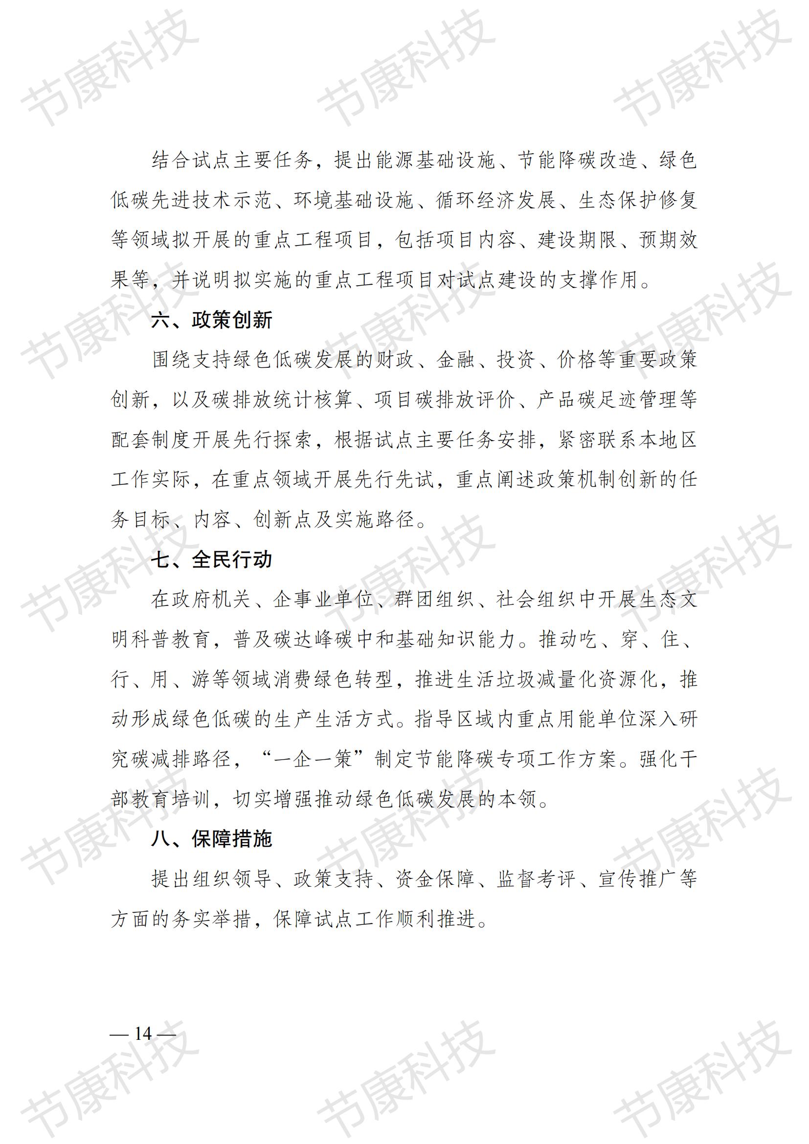 《国家碳达峰试点建设方案》的通知